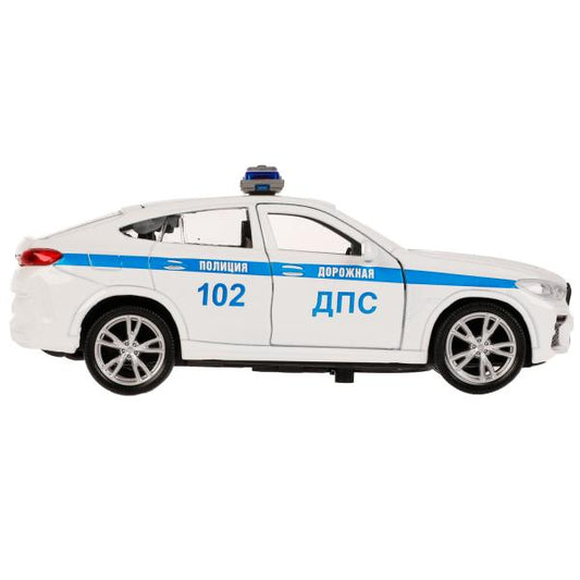Машина металл BMW X6 ПОЛИЦИЯ длина 12 см, двери, багаж, инерц, белый, кор. Технопарк в кор.2*36шт