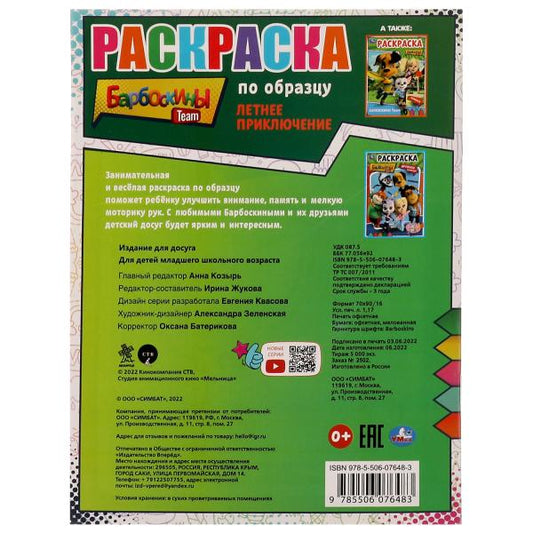 Летнее приключение. Барбоскины. Раскраска по образцу. 162х215 мм. Скрепка. 16 стр. Умка в кор.50шт