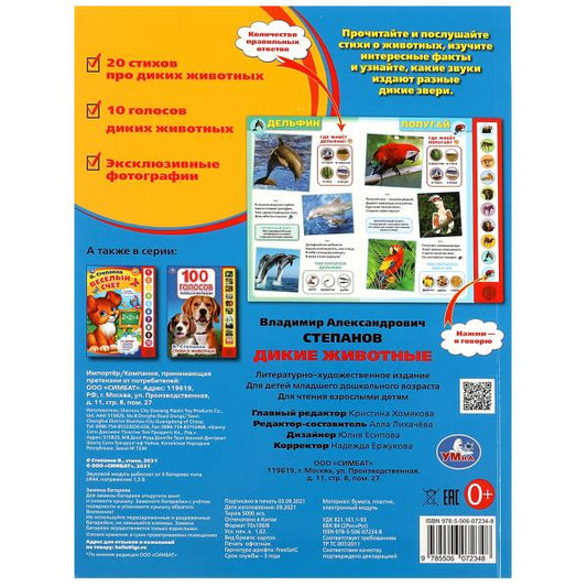 Дикие животные Степанов В.А. (10 зв. кнопок) 233х302мм 10стр Умка в кор.24шт