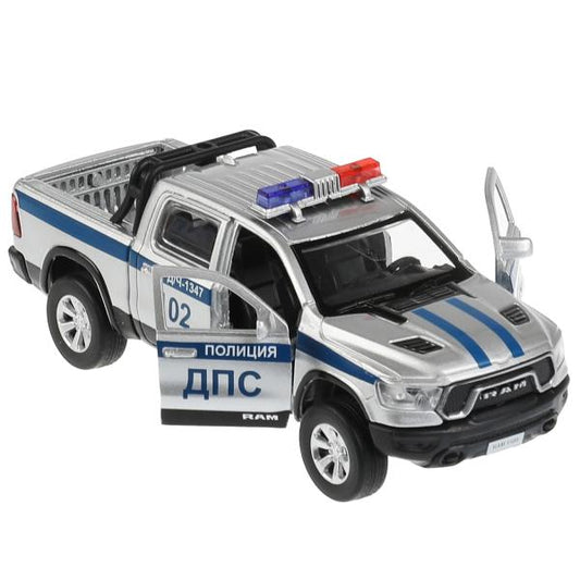 Машина металл свет-звук DODGE RAM ПОЛИЦИЯ 13 см, двер, баг, ин, серебр, кор. Технопарк в кор.2*36шт