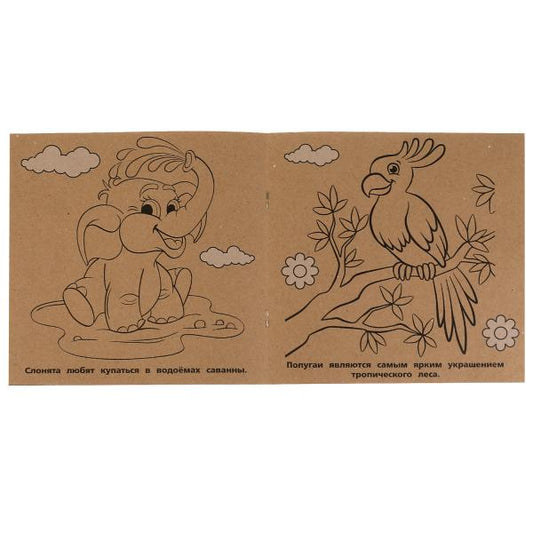 Дикие животные. Эко Раскраска 200х200 мм. Крафт-бумага. 8 стр., 2+2 Умка в кор.50шт