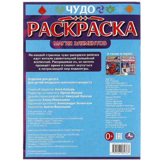 Магия элементов. Чудо-раскраска. 214х290 мм. Скрепка. 8 стр. Умка в кор.50шт