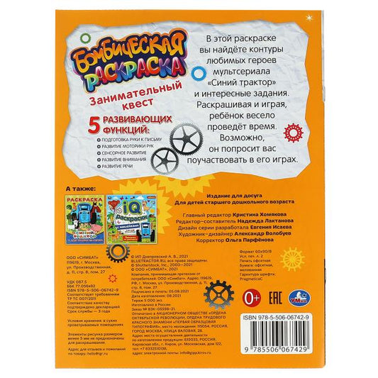 Занимательный квест. Бомбическая раскраска. СИНИЙ ТРАКТОР. 214х290мм, 16 стр. Умка в кор.50шт