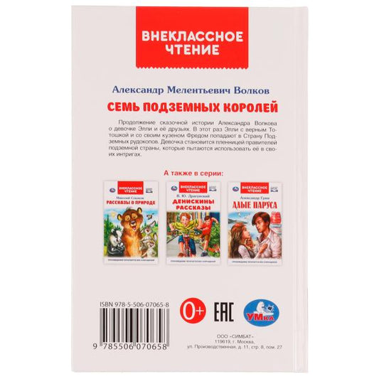 Семь подземных королей. А. М. Волков. Внеклассное чтение. 125х195 мм. 7БЦ. 320 стр. Умка в кор.16шт