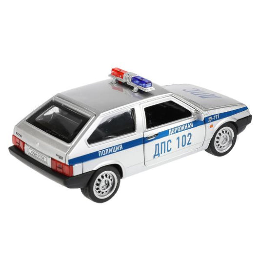Машина металл LADA-2108 "СПУТНИК" ПОЛИЦИЯ 12 см, двери, багаж, кор. Технопарк в кор.2*36шт
