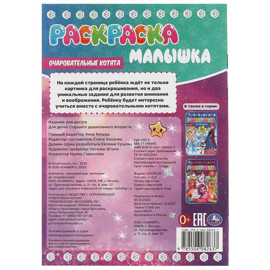 Очаровательные котята. Раскраска-малышка. 16 заданий. 145х210мм. Скрепка. 8 стр. Умка в кор.100шт