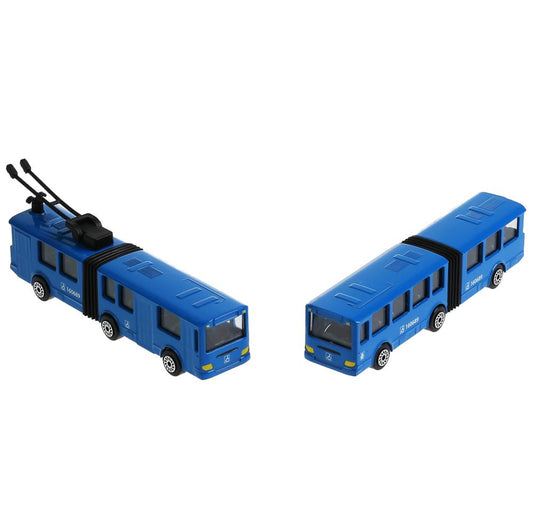 Машина металл автобус/троллейбус с резинкой, 12см, в ассорт. в дисплее Технопарк уп-12шт в кор.2*4уп