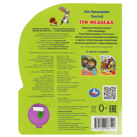 Три медведя. толстой л.н. (1 кн. 3 пес.) 152х185мм, 8 стр Умка в кор.24шт
