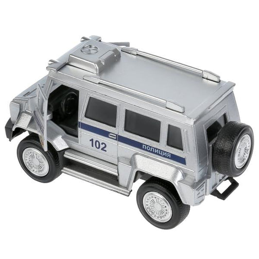 Машина металл свет-звук "бронеавтомобиль полиция" 12см, инерц., серебристый. Технопарк в кор.2*36шт