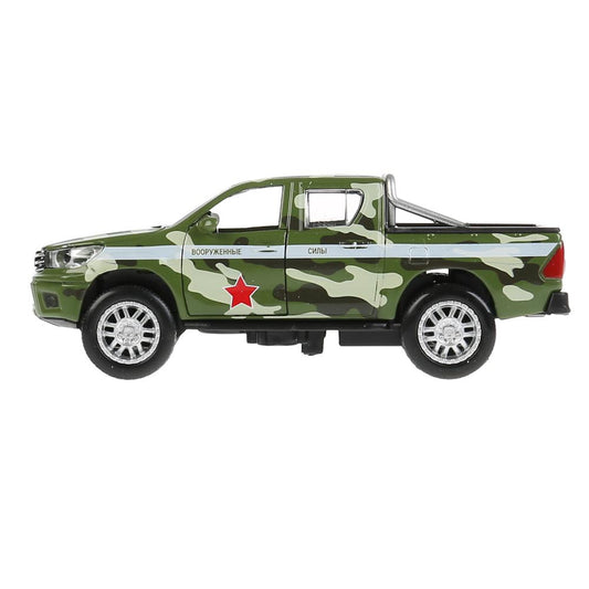 Машина металл свет-звук "toyota hilux камуфляж" 12см, инерц.зеленый,в кор. Технопарк в кор.2*36шт