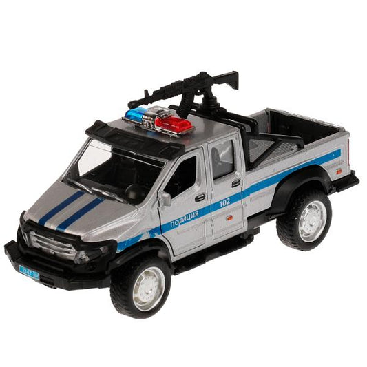 Машина металл ГАЗ ВЕПРЬ ПОЛИЦИЯ 12,5 см, двери, пулем, инерц, сер, кор. Технопарк в кор.2*60шт