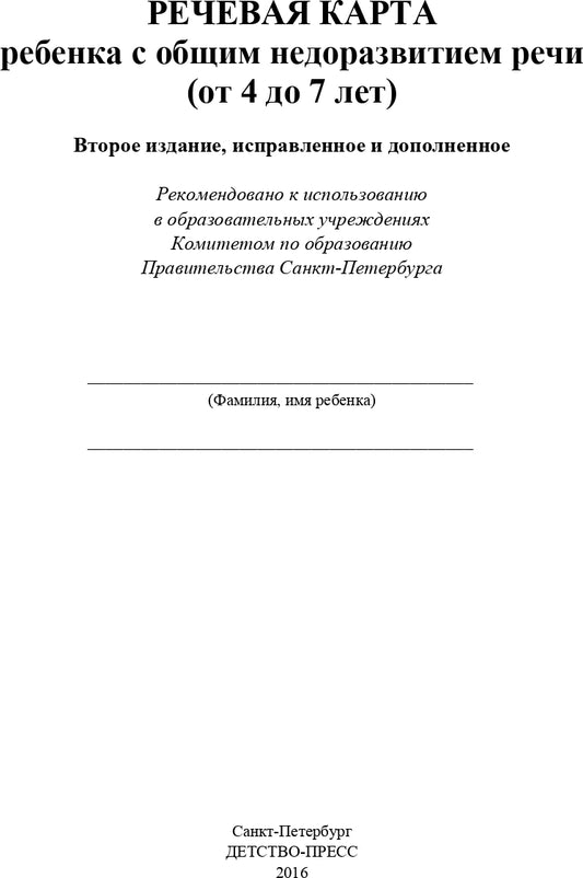 Речевая карта ребенка с общим недоразвитием речи (от 4 до 7 лет). Второе издание, исправленное и дополненное. ФГОС.