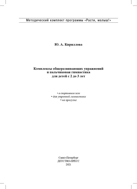 РАСТИ, МАЛЫШ! Комплексы общеразвивающих упражнений и пальчиковая гимнастика для детей с 2 до 3 лет. (Методический комплект программы «Расти, малыш!») . ФОП. ФГОС.
