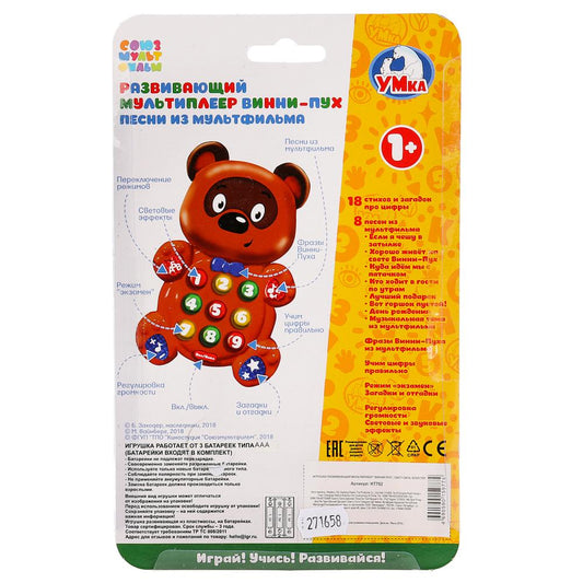 Развивающий мультиплеер "винни пух" Союзмультфильм на бат. свет+звук на блистере "Умка" в кор.96шт