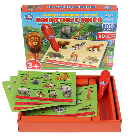 Электровикторина с ручкой животные мира. 100 картинок, 80 обучающих заданий. "Умка" в кор.36шт