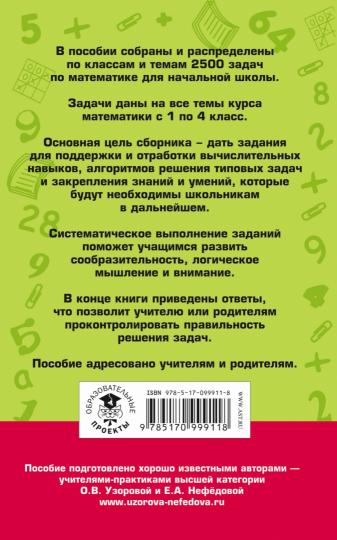 2500 задач по математике с ответами ко всем задачам. 1-4 классы