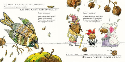 За двумя зайцами. 33 пары английских и русских пословиц : [сб. пословиц] / сост. Г. М. Кружков; ил. С. В. Любаева. — М. : Нигма, 2017. — 48 с. : ил. с автографом