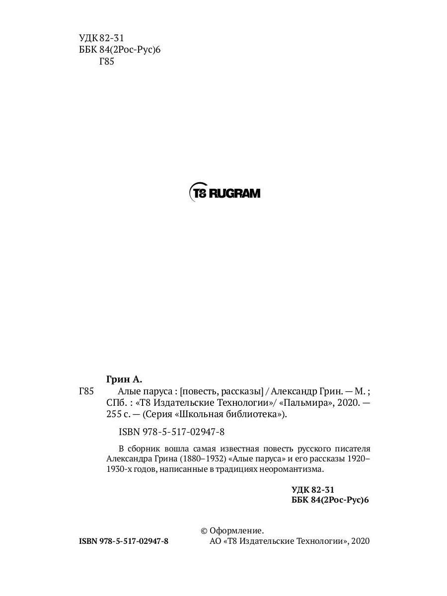Автор: Грин Александр, «Алые паруса: повесть, рассказы»: В сборник вошла самая известная повесть русского писателя Александра Грина (1880-1932) «Алые паруса» и его рассказы 1920-1930-х годов, написанные в традициях неоромантизма.