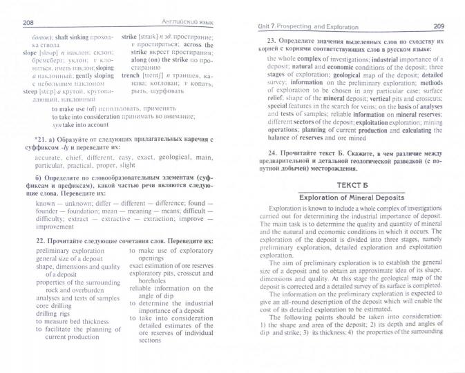 Учебник предназначен для вузов горно-геологического профиля и ставит целью научить студентов читать литературу по специальности и вести беседу в рамках изучаемой тематики. Включает упражнения на отработку фонетики, лексический минимум общетехнической и общенаучной лексики, а также грамматический материал и систему тренировочных и творческих упражнений. В 4-м издании обновлен текстовый материал учебника, включены тексты для внеаудиторного чтения, дополнен грамматический материал в уроках и в грамматическом справочнике, включен материал по аннотированию и реферированию, расширена система творческих заданий, добавлен англо-русский словарь общетехнической и общенаучной лексики.
