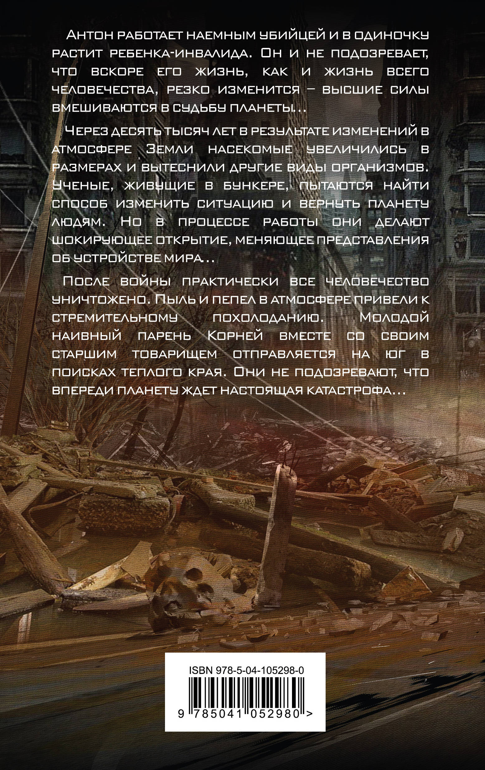 Три катастрофических сценария нашего грядущего от суперпопулярного видеоблогера Max Maximov!Откроется ли вход в рай грешному человеку, если все свои силы он тратит на уход за дочерью-инвалидом? А – человекоподобному роботу? Девочка-инвалид Ева готова на все, лишь бы помочь отцу и любимому роботу спасти свои души…В мире далекого будущего люди вынуждены сражаться с гигантскими насекомыми, захватившими все, некогда принадлежавшие человечеству территории. Лишь в громадном подземном бункере, именуемом Укрытие, начиненном новейшими технологическими новинками, человек может оставаться в относительной безопасности, не рискуя быть разорванным жвалами чудовищного муравья или парализованным ядом осы, размером с тигра. Ученые в бункере ищут выход, моделирую ситуацию на суперкомпьютере, у которого есть свои планы…Земная цивилизация разрушена ядерной войной. Люди предельно жестоки друг другу. Каннибализм становится обычным делом. С всеобщим озверением не может примириться астроном Корней. Он считает, что даже в самых жесточайших условиях нельзя терять человеческий облик. Но жизнь, как всегда, оказывается гораздо сложнее…