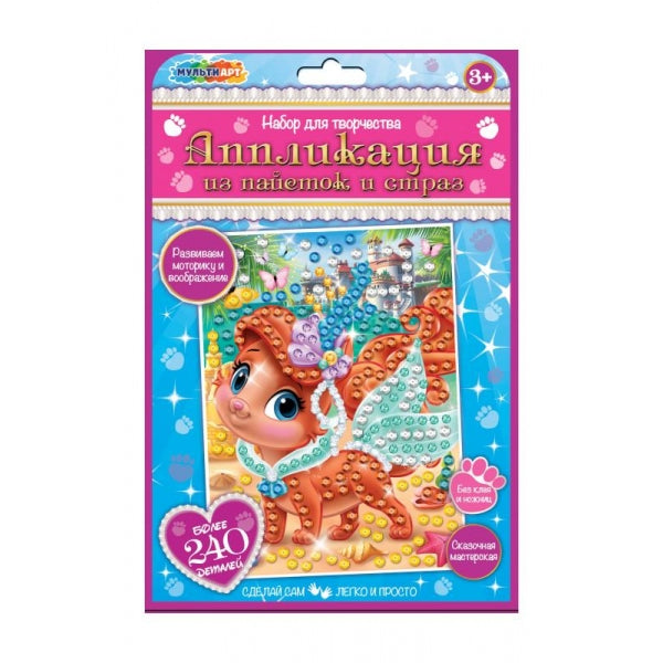 Аппликация из пайеток и страз 17*23 см питомцы МУЛЬТИ АРТ в кор.100шт