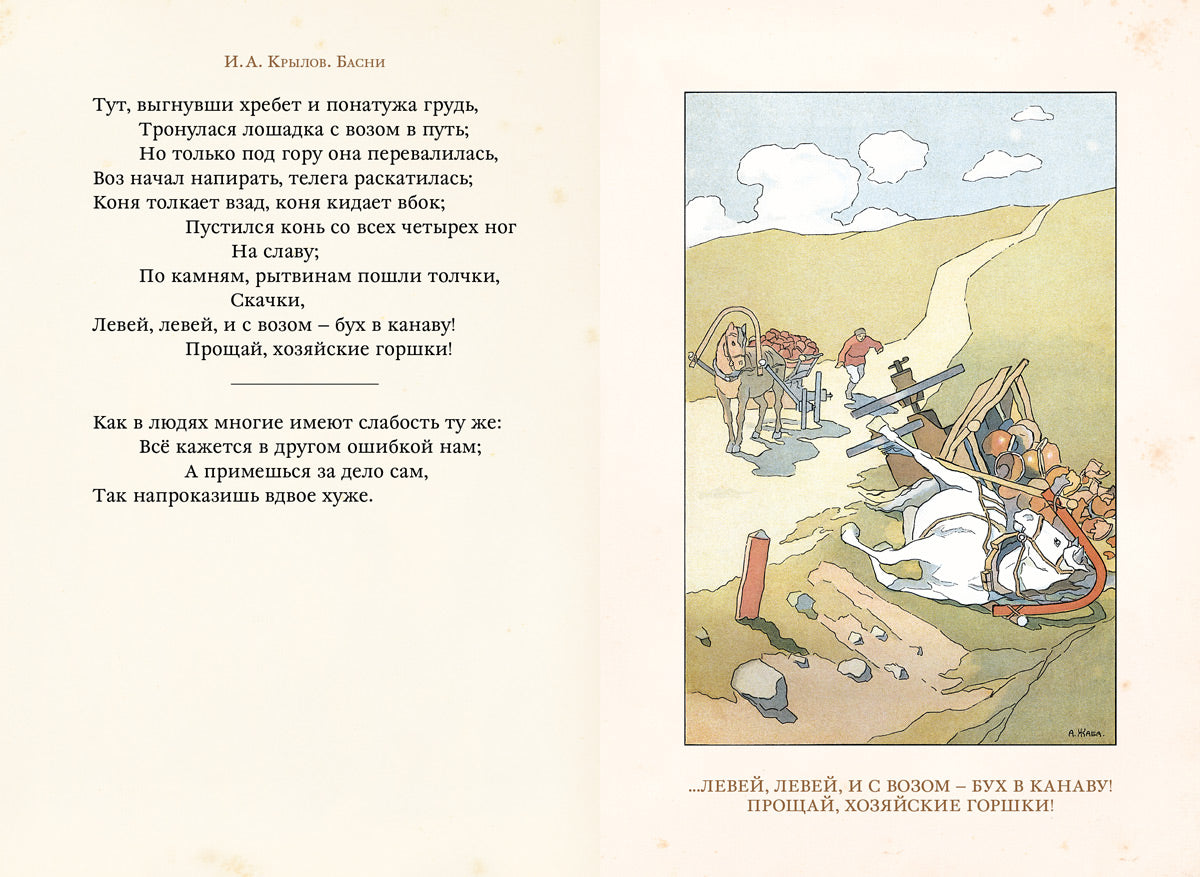 С баснями Ивана Андреевича Крылова многие знакомятся ещё в детстве и возвращаются к ним во взрослом возрасте, перечитывая и открывая новые смыслы. Их аллегоричность и поэтичность понятны и ребёнку и взрослому. Удивительные по красоте и тонкому юмору, несущие в себе народную мудрость, они были переведены на разные европейские языки.