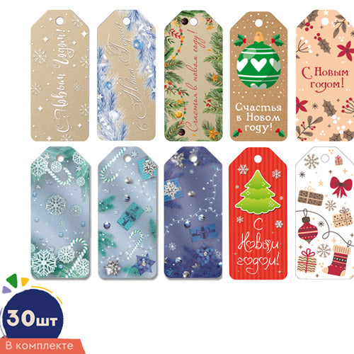 *БК-17063 Комплект бирок. Новогодние (30 шт: 10 видов по 3 шт.)