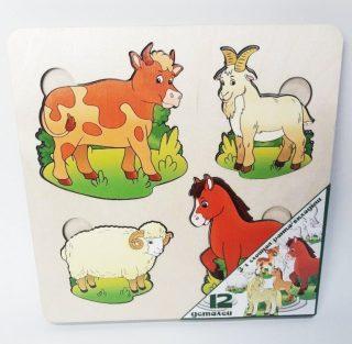 Больше-меньше "Домашние животные" арт.7914 развивающая доска (дерево) /18,5*18,5 см./29