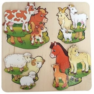 Трёхслойная рамка-вкладыш "Больше-меньше. Домашние животные" станет полезным и интересным пособием для детей. В наборе - деревянная дощечка с углублениями разного размера и фигурки с изображениями различных зверей, которые ребёнку нужно будет вложить в углубления, предназначенные специально для них. В процессе игры малыш узнает, что такое больше и меньше, а также научится различать предметы по форме и цвету. Размер рамки (ДхШхВ) составляет 24х24х1,5 см. Предметы набора изготовлены из дерева. Рекомендованный возраст: 3 года +