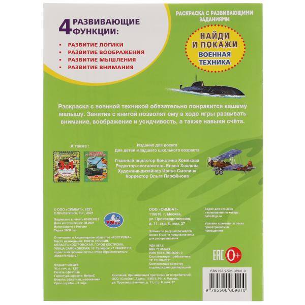 Военная техника. Раскраска с развивающими заданиями. Найди и покажи. 214х290мм 16стр. Умка в кор50шт