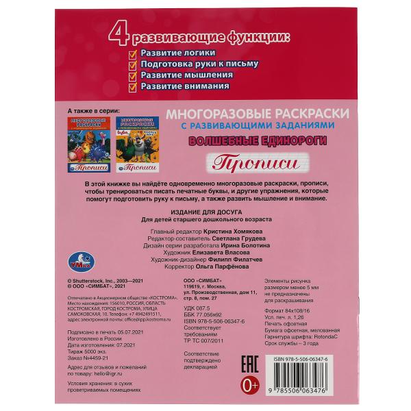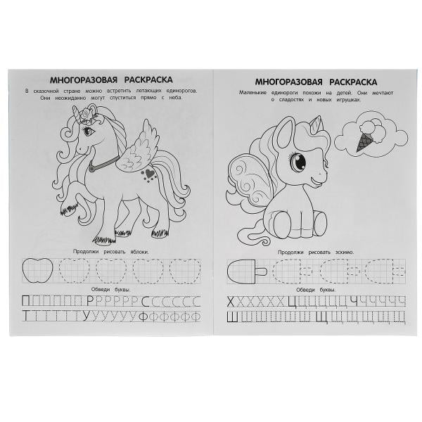 ВОЛШЕБНЫЕ ЕДИНОРОГИ. Многоразовые раскраски с развивающими заданиями. 200х260 мм. Умка в кор.50шт