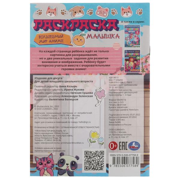 Волшебный мир аниме. Раскраска Малышка 16 заданий. 145х210 мм. Скрепка. 8 стр. Умка в кор.100шт