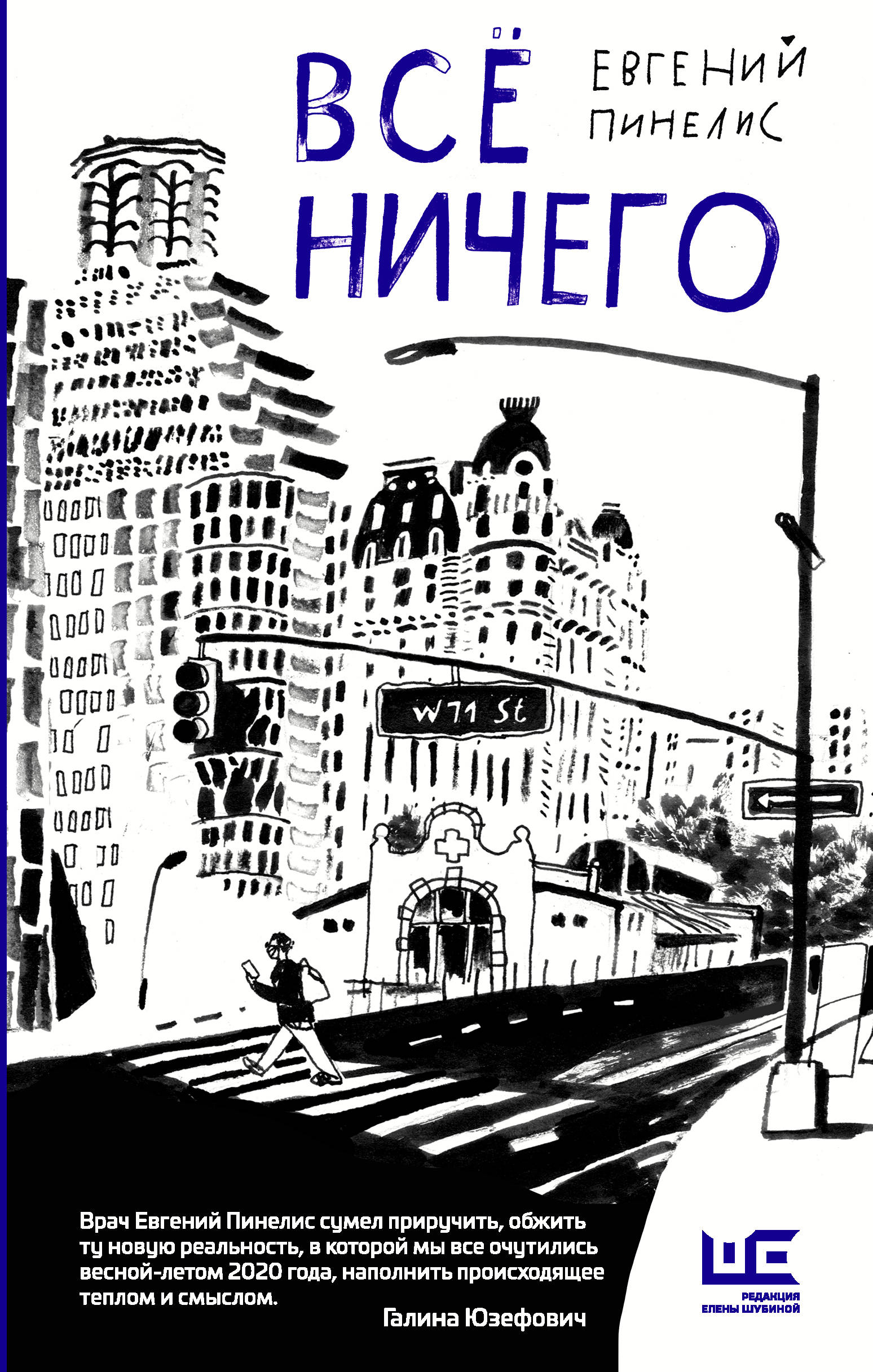 "Евгений Пинелис, врач-реаниматолог в одной из больниц Нью-Йорка, родился в Москве в семье врачей, окончил медицинский университет и работает в США. ""Всё ничего"" — его дебютная книга.Евгений Пинелис умеет многое: смешить и пугать читателя, выкручивать рычажок эмпатии на максимум, находить идеально верные слова и интонацию для разговора о том, о чем мы сами говорить еще не научились. Однако главное его умение – приручить, обжить, описать ту жутковатую новую реальность, в которой мы все очутились весной-летом 2020 года, интегрировать ее в нашу обыденную жизнь – а значит, наполнить происходящее теплом и смыслом.Галина ЮзефовичКнига, начинавшаяся как дневниковые наброски о становлении врача-иммигранта в Америке, достигает своего апогея в ""ковидном мареве"" пандемии, в самом ее эпицентре. Время начинает течь по-другому; человек эпохи интернета, привыкший тонуть в ежедневных информационных потоках, вдруг оказывается отрезанным от реального мира, не знает, что творится за окном, и уж точно не знает, как выглядит та угроза, из-за которой велено ""не выходить из комнаты"". ""Всё ничего"" — спокойный и внимательный взгляд врача в сочетании с вынужденной сиюминутностью записи — становится не только важным источником информации, но и актуальной литературой.Александр СтесинПро Евгения Пинелиса я узнал из фейсбука. Мы тогда только вступали в схватку с коронавирусом, и для многих, особенно для врачей, его записи стали возможностью заглянуть в недалекое будущее.Но это не только будни врача. Это рассказы о любви к этому большому и такому разному Нью-Йорку и о людях, в нем живущих. А еще в этой книге есть то, что я ценю больше всего. Когда читаешь и не знаешь, чего тебе хочется больше — плакать или смеяться. Всё ничего.Алексей МоторовЕсли вы хотите посмотреть на медицинский мир изнутри, то лучше всего это делать глазами врача-реаниматолога. Весь драматизм принятия решений больного в критическом состоянии, бытовые немедицинские зарисовки...Денис Проценко"