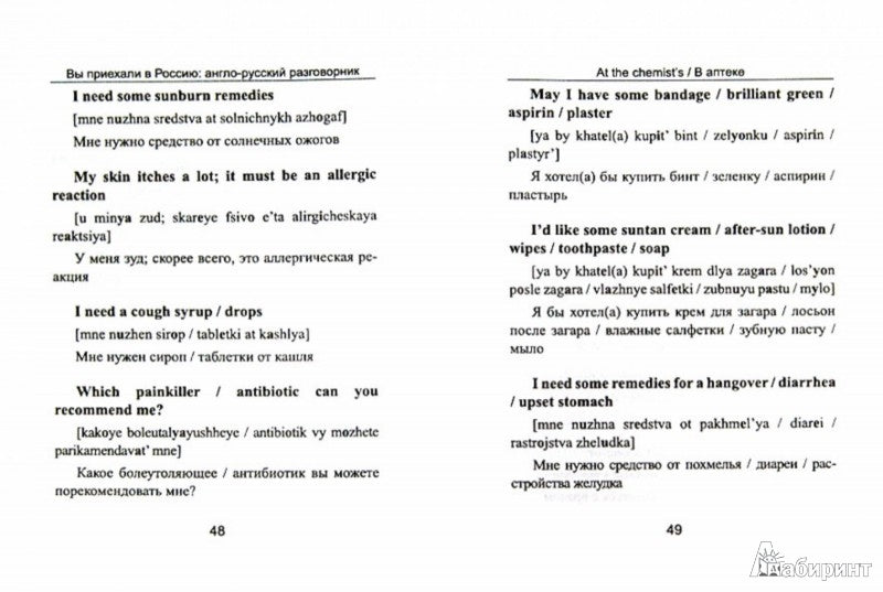 Вы собираетесь в путешествие по России, но совершенно не знаете русского языка? Тогда данный разговорник станет вашим верным помощником и поможет не только поддержать диалог с местными жителями, но и решить многие бытовые проблемы, такие как прохождение паспортного контроля, консультация врача, аренда жилья и автомобиля, совершение покупок, выбор блюда в ресторане, осмотр достопримечательностей и многие другие. Теперь, выезжая за границу, почувствуйте себя как дома!