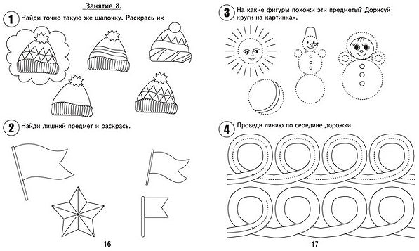 30 занятий для успешного развития ребенка (1 часть) 4 года. Рабочая тетрадь Перед вами тетрадь для занятий с детьми, при помощи которой малыши смогут развить произвольное внимание, логическое мышление, мелкую моторику и координацию движений руки, а также позаниматься математикой. 1 часть тетради состоит из 15 занятий, каждое из которых включает 4 задания: - задания на развитие произвольного внимания; - задания на развитие логического мышления; - задания по математике; - задания на развитие графических навыков. Время одного занятия не должно превышать...