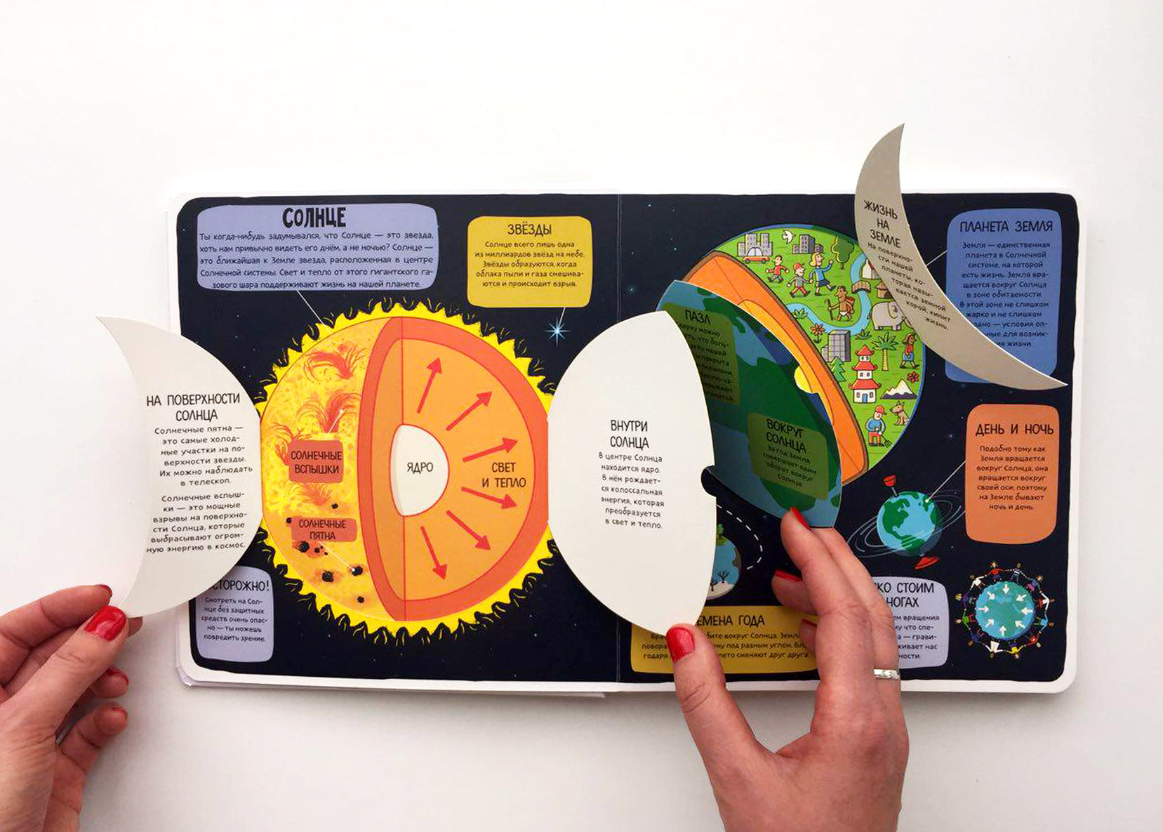 Читайте эту книгу вместе с детьми. Помогайте им открывать окошки, отвечайте на те вопросы, которые остались без ответа. В этой книжке собрана вся важная информация о космосе, научных открытиях, полетах, Луне, Солнце, инопланетянах (конечно, они изображены здесь очень смешными и милыми). Это, конечно, книжка-игрушка, но, поверьте, информация, которую ребенок найдет на страничках и в окошках, будет очень полезной, важной и нужной.