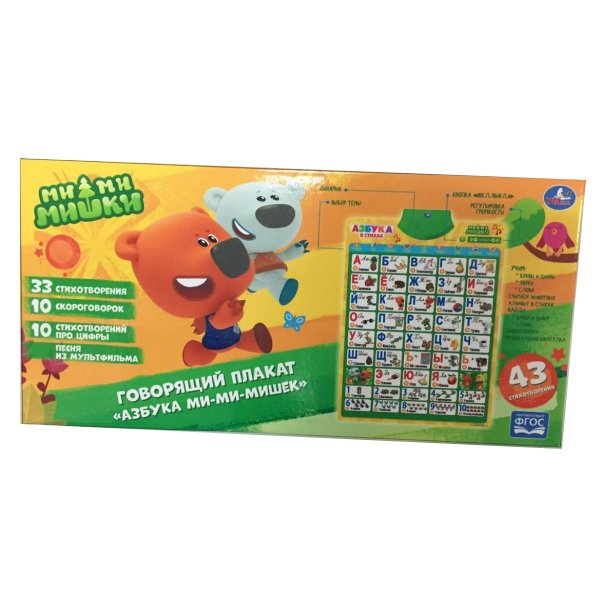ГОВОРЯЩИЙ ПЛАКАТ "УМКА" АЗБУКА МИ-МИ-МИШЕК НА БАТ. РУССИФИЦ. В РУСС. КОР. в кор.48шт