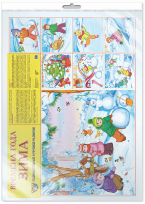 *ДДемонстрационный плакат СУПЕР А2 Времена года: Зима. Что делают дети зимой(1 большая картинка и 7 небольших)(в индивидуальной упаковке с европодвесом и клеевым клапаном)