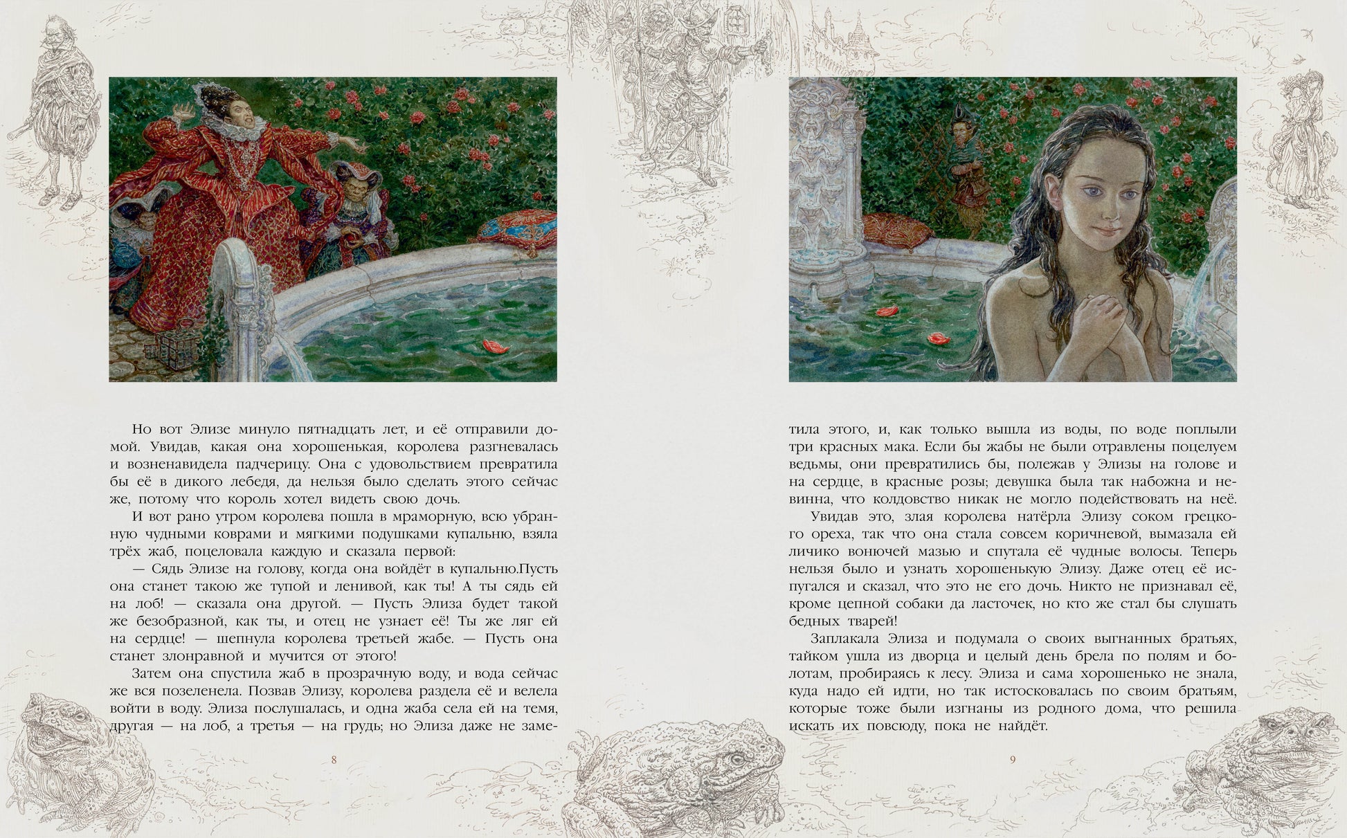 Дикие лебеди (иллюстр. А. Ломаева). Андерсен Х.К. Золотые сказки в иллюстрациях знаменитых художников "Дикие лебеди" - одна из лучших сказок Андерсена. В прекрасном замке жила маленькая принцесса Элиза и ее одиннадцать братьев-принцев. Дети были чисты сердцем, красивы и добры, но это не уберегло их от проклятия злой мачехи. Она превратила юных принцев в лебедей, а бедняжку Элизу выгнала из замка... Но у этой сказки, как у всех самых прекрасных сказок в мире, хороший конец. Чудесные, завораживающие, по-настоящему сказочные иллюстрации...