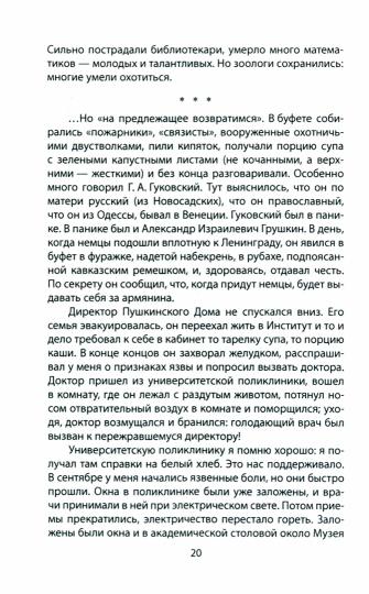 Дмитрий Сергеевич Лихачев - всемирно известный ученый: филолог, культуролог, искусствовед, автор около 500 научных и 600 публицистических трудов; председатель правления Российского фонда культуры. В годы Великой Отечественной войны он находился в осажденном фашистами Ленинграде, где видел все ужасы блокады. В своих воспоминаниях он пишет об этом; подробности жизни блокадников показаны на фоне общих раздумий о морально-нравственном состоянии людей в этих тяжелейших условиях. Военный врач, хирург Федор Федорович Грачев в годы войны работал в госпитале в блокадном Ленинграде и оставил уникальные воспоминания. Автор показывает целую галерею защитников Ленинграда - солдат, офицеров, моряков, добровольцев из числа ученых, студентов, литераторов. Примечательно, что именно в этом госпитале лечился после ранения знаменитый впоследствии советский писатель Федор Абрамов