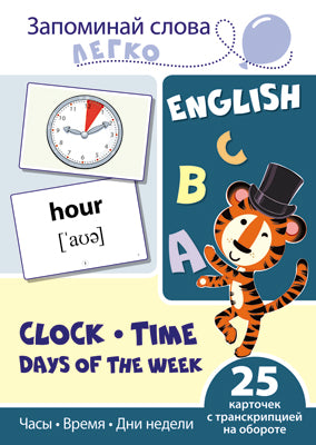 Запоминай слова легко. Часы, время, дни недели. 25 карточек с транскрипцией на обороте.