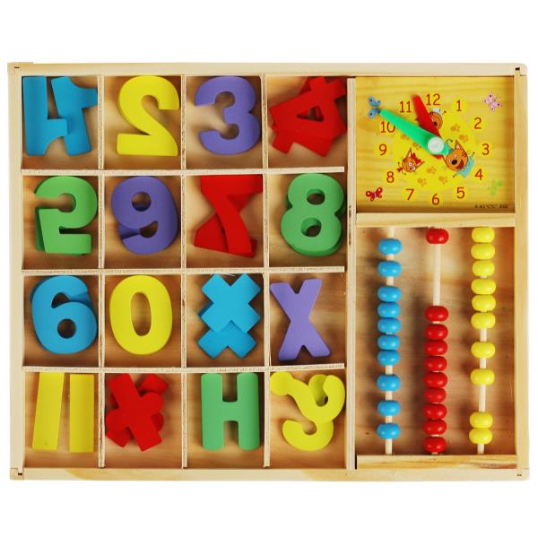 Игрушка "Игрушка деревянная Три Кота счетный материал с часами, терм. пакет Буратино в кор.120шт". Размер: 0.097.