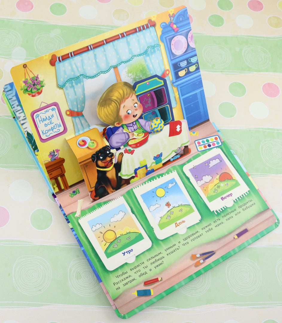 Книжка-панорамка с окошками ЧТО СЕГОДНЯ НА ОБЕД? Что сегодня на обед? Эта книжка про животных - домашних и диких, травоядных и хищников, расскажет малышу кто что ест. Как добывают еду? А что на обед у малышей? Почему надо есть полезные продукты? Это удивительная книга! На каждом развороте есть объемные картинки, подвижные детали и даже окошки. А значит книгу можно не только читать, с ней можно играть. Издание подойдет для занятий и игр с детьми в возрасте от двух лет.