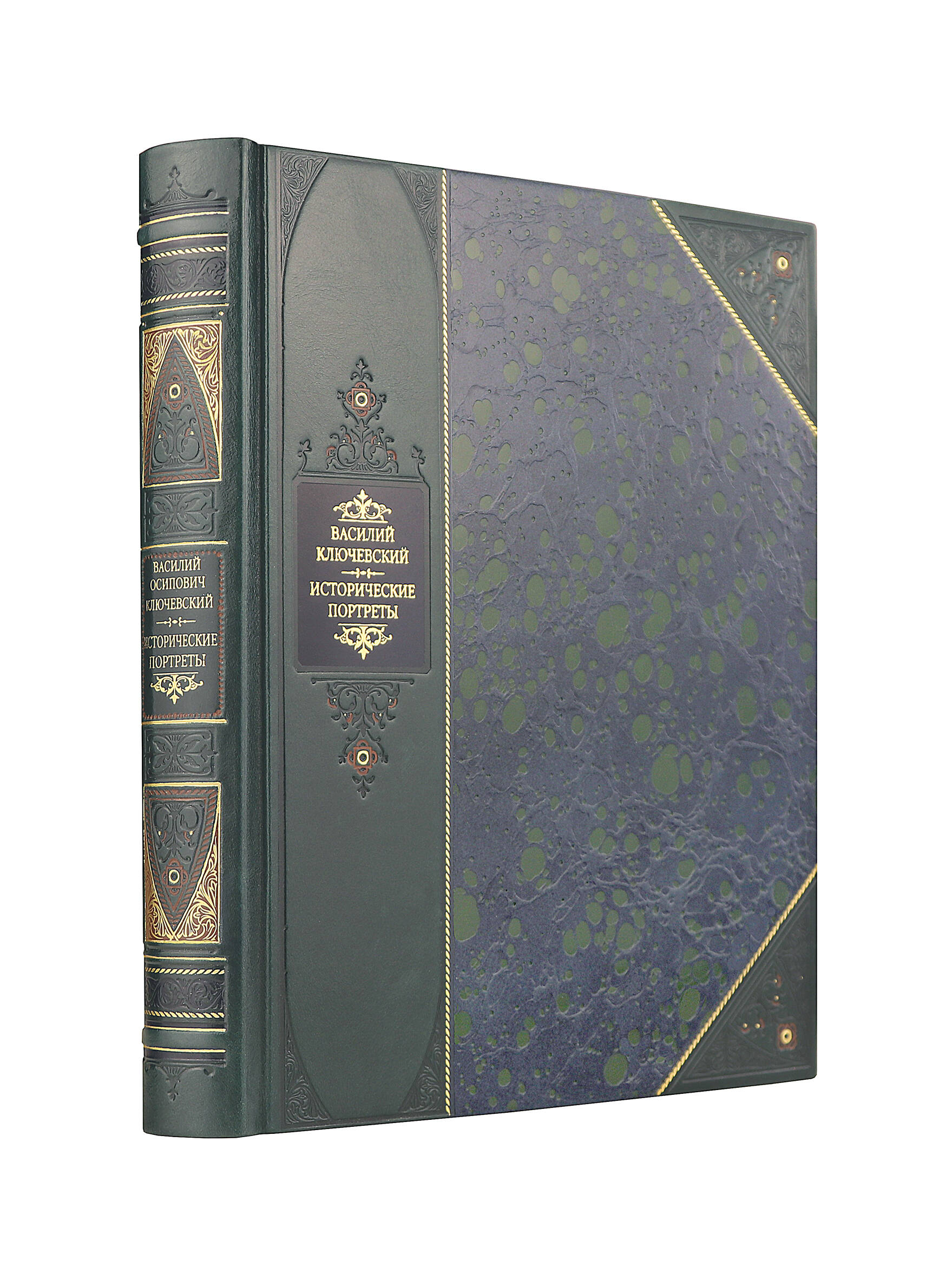 Исторические портреты Василия Ключевского". Книга в коллекционном переплете из двух видов кожи с рисунком мраморной бумаги и с изящным тиснением в стиле 19 века