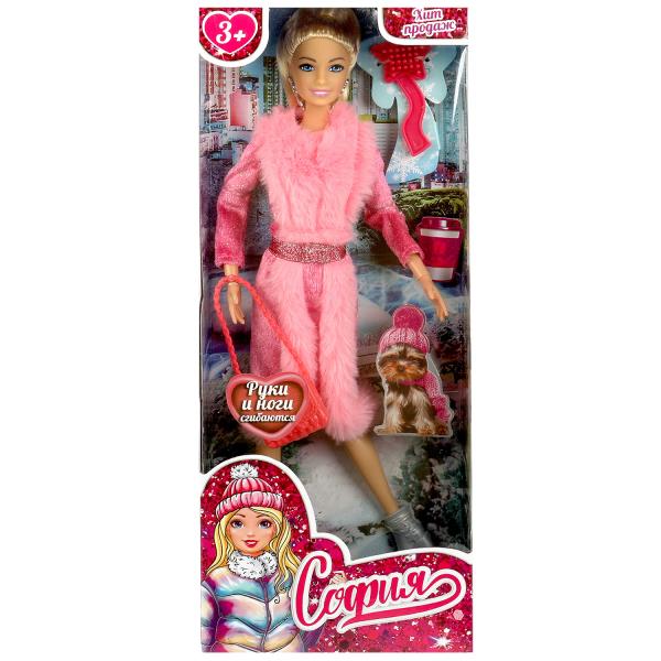 Карапуз. Кукла "София" 29см в розовом платье с мехом руки и ноги сгиб, акс, кор арт.66001-W27-S-BB