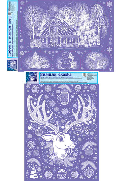 Н-14205 Наклейки А3. Зимняя сказка Олени (пластизоль, многоразовые)