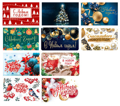 *КБ-15780 Комплект двойных мини-открыток. С Новым годом! (30 шт: 10 видов по 3 шт)