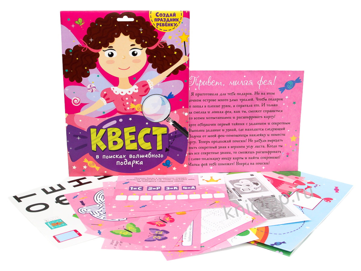 Мечтаете наполнить волшебством детский праздник? Хотите, чтобы ребёнок надолго ?апсмнил ваш подарок? ТЛогда вы нашли то, что искали!Превратите простое поздравление в увлекательный квест! Спрячьте подарок и позвольте малышу, отправиться на поиски своего сокровища. Ему предстоит выполнить ?адания, расшифровать подсказки и восстановить карту, которая подскажет правильный путь.Поверьте в чиаеса!