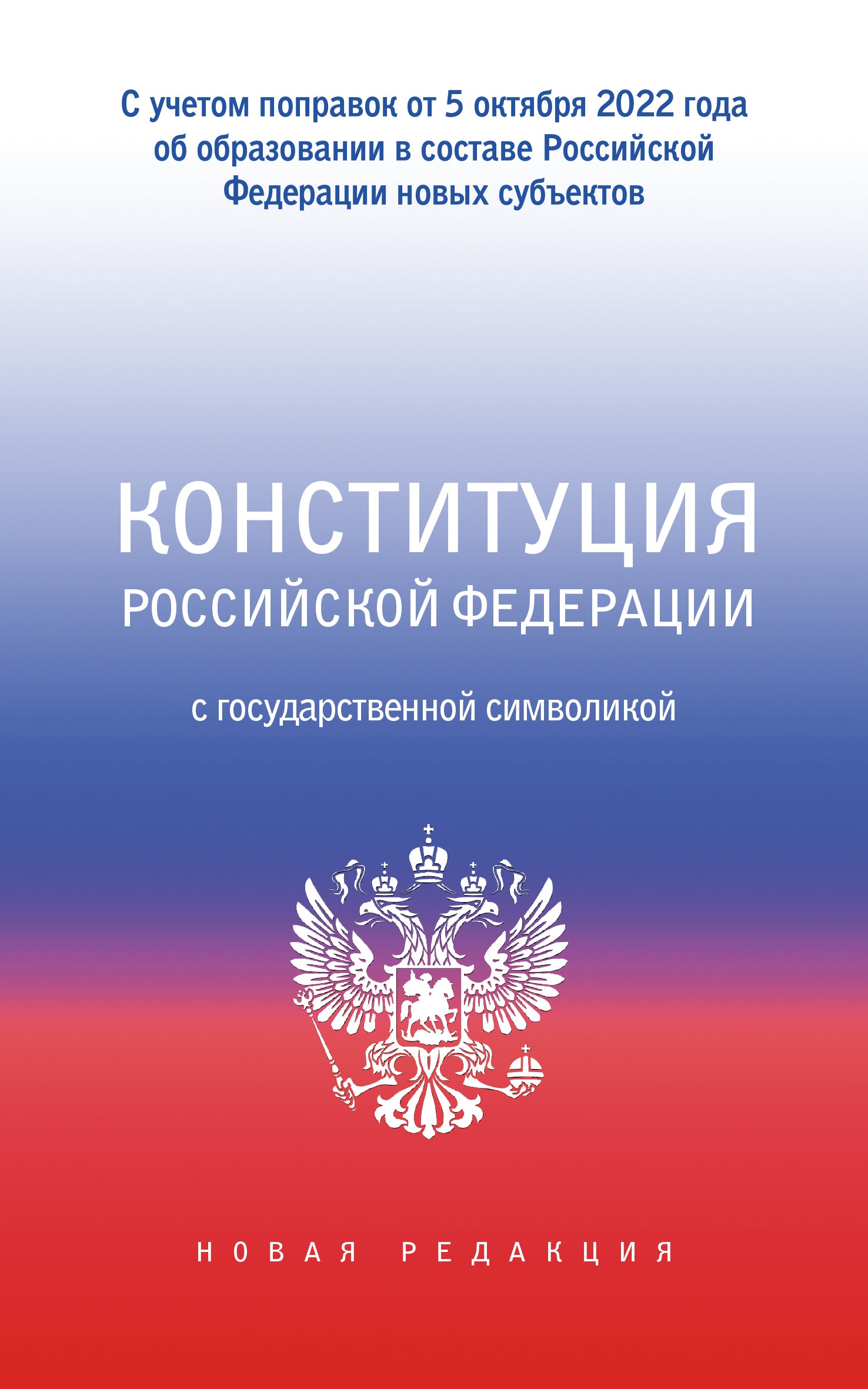 Конституция Российской Федерации в новой редакции с учетом образования в составе Российской Федерации новых субъектов: Донецкой Народной Республики, Луганской Народной Республики, Запорожской и Херсонской областей.В издании приводятся Федеральные конституционные законы о флаге, гербе и гимне, которые устанавливают их описание и порядок официального использования.