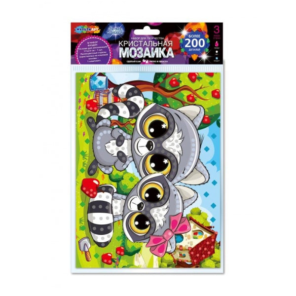Кристальная мозаика в пакете 17*23 см еноты МУЛЬТИ АРТ в кор.100шт